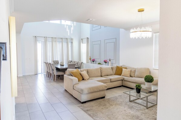 Spacious 5-bedroom 5bath house in serene Davenport with AC, Heating and Pool provides laundry facilities and more. Guests can connect to in-room WiFi.