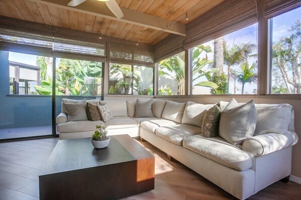 Welcome to your modern and coastal 2-bedroom home away from home! We are conveniently located just a block and a half from a flat and sandy beach, the very best in San Diego! If you head East, you are also a short stroll from the famous Del Mar Race Track & Fair Grounds! Del Mar's Dog Beach and The Del Mar Village are also just a short stroll on foot. Our unique duplex features panoramic views, a lush exterior landscape, and an enclosed outdoor shower. Pack up the family and experience the very best that this dynamic beach town has to offer.