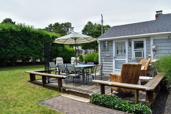 Cozy two bedroom cottage located .5 miles to Hagis Beach! Home features separate living room and lovely family room giving your family plenty of room to spread out. Family room leads out to spacious deck with ample seating. New ceilings with recessed lighting were recently added as well as new flooring in family room. Amenities include air conditioning in each bedroom and family room, gas grill, enclosed outdoor shower and WiFi.