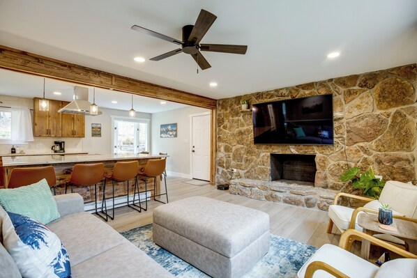 Guest accommodation at Hot Tub + Game Room: Peaceful Retreat in Evergreen offers fireplaces and an iron/ironing board. Rooms open to patios. Accommodation at this 3-star cottage has kitchens with stovetops, microwaves, kitchenware and utensils and dishwashers. Bathrooms include baths or showers. Cots/infant beds (complimentary) are also available.