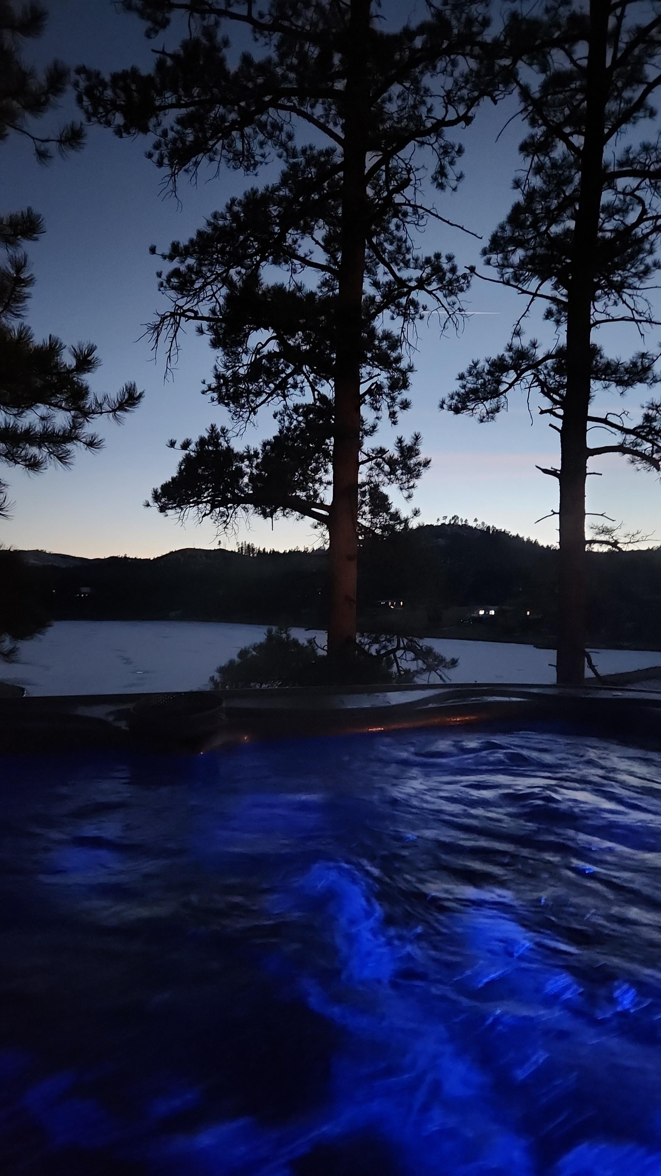 Two wraparound decks with lake views, outdoor dining for 6, hanging swing bench, propane grill, fire table, patio heater, and additional seating areas. The sound of the lake spillway, when it's running, is lovely. Cedar sauna and hot tub both overlook the lake, both of which comfortably seat 4.