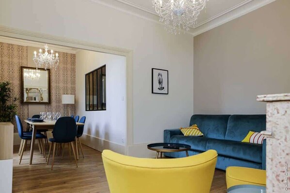 Magnificent apartment able to accommodate up to 8 travelers. Lock-up garage, a stone's throw from downtown, the Cité Gastronomique and Mama Shelter.