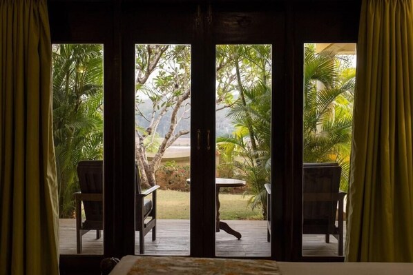 Tranquil gardens and an outdoor pool create a peaceful retreat where travelers can enjoy delicious meals and maintain fitness routines