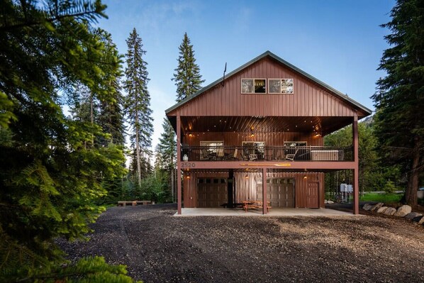 Very spacious! Bedroom areas and bathrooms worked great for our party of 10. Nice quiet wooded area, even with a road nearby. Just a short drive from Donnelly. The last 2 miles are on a well maintained gravel road. We give it a thumbs up!