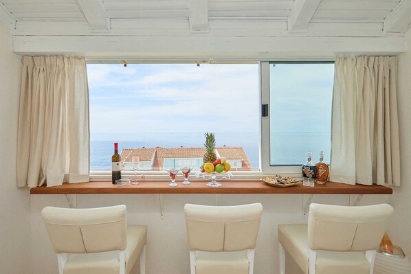 Comprehensively equipped. Kitchen dining and sunroom with amazing seaviews. Feels like a home away from home.