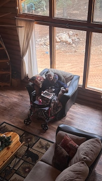 The cabin was very nice and cozy, the only thing that we didn’t like is that it doesn’t have a tv in any room or at the living room. It does have a big tv at the play room down stairs but my old lady( mom) couldn’t go downstairs. Other then that everything was good.