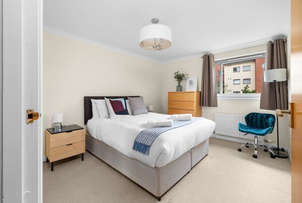 Thorter Row is a bright and welcoming two-bedroom flat perfectly placed for a fun-filled stay in Dundee. Tucked nicely into City Quay, this first-floor apartment offers a peaceful stay just moments from the city’s waterfront buzz. Whether you`re here for culture, cuisine, shopping or simply to relax, Thorter Row puts you in the perfect spot to enjoy it all.You’ll be just a short walk from both the train and bus stations, making arrival and departure refreshingly straightforward. And with private parking included, you can leave the car and explore on foot at your own pace.Inside, the flat is thoughtfully equipped to meet the needs of both short breaks and longer stays. The main bedroom features a king-sized bed, while the second offers a small double - ideal for a couple, friends or a family of three or four. The modern bathroom includes a shower over the bath.The spacious lounge is the heart of the home, with a cosy sofa, a smart Tv, and a dedicated desk area if you need to catch up on work or emails during your stay. It’s a lovely, relaxed space to unwind after a day out exploring.City Quay has become one of Dundee’s most desirable areas for visitors, thanks to its waterside setting and proximity to the city centre. Once part of Dundee’s bustling docks, it has been beautifully regenerated into a vibrant neighbourhood with cafés, restaurants, and a relaxed marina atmosphere.Just a few minutes from the flat is the Rrs Discovery and V&a Dundee, two of the city’s headline attractions. And even closer still is the Hms Unicorn, one of the world’s oldest surviving warships and a proud piece of Dundee’s maritime history - moored practically on your doorstep.You’ll also be close to local favourites like Porter`s Bar & Restaurant, Quayside Bar & Grill (located in The Apex Hotel), and the independent shops and bars (The Wine Press) in the city centre, close by. Whether you’re sampling street food (Heather Street Food outside the V&a is a must, and Jannetta’s Gelateria), strolling the Waterfront Promenade, or heading out for live music, everything is within easy reach.Thorter Row takes its name from a stretch of Dundee with a rich past. Historically, ‘Thorter Row’ was a narrow lane that once ran through the heart of the city, lined with small shops and merchants’ houses. While the original street has been reshaped by time and redevelopment, the name lives on - a nod to the area’s long-standing role in Dundee’s commercial and social life.City Quay itself was once the beating heart of Dundee’s jute and shipping industries, and its Victorian warehouses and harbour walls still tell stories of that era. Staying here gives you a chance to soak up that atmosphere – and perhaps imagine the sights and sounds of the city’s past as you sip your morning coffee.Thorter Row is perfect whether you`re visiting for a family break, a couples getaway, or a working trip with some downtime. The combination of comfort, location, and a touch of local charm makes this flat a standout base for making the most of Dundee.Book your stay and experience the very best of the city - from historic ships to riverside walks, vibrant culture to waterside calm – all from the comfort of Thorter Row.