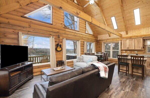 Whether you're seeking a romantic getaway, a family retreat, or a gathering with friends, this three-bedroom, two-bath log cabin on Table Rock Lake promises an unforgettable experience in the heart of nature. Escape the everyday and create treasured memories in this idyllic retreat.