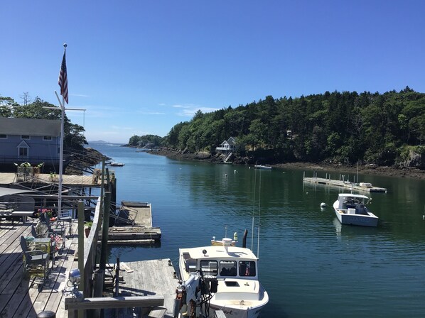 Dockside Cottage at Little River Wharf offers a charming setting where you can watch lobstermen and boaters access the harbor. With amenities like flowers by the bed, coffee, tea, fresh muffins, outside dining space and WiFi to stay connected.