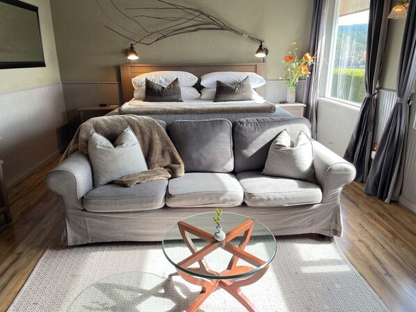 The Kingfish at West Sound offers a serene escape in beautiful surroundings. Guests can relax with drinks at the bar or enjoy a meal in the restaurant while staying connected with complimentary WiFi in their rooms.