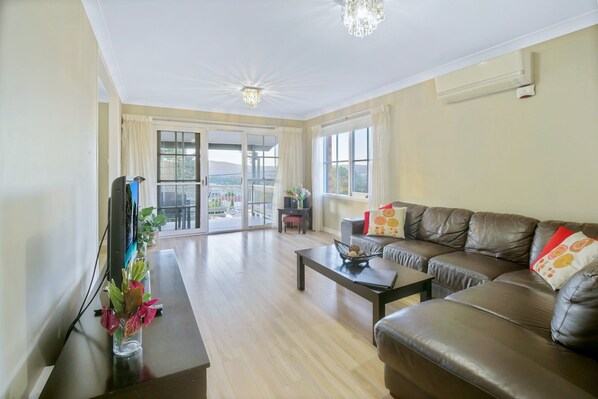 The large open plan kitchen, living and dining room (with reverse cycle air conditioning) means that there is plenty of space for the whole family to cook, eat and socialise. The ocean views from the large covered front Balcony means that you will enjoy your view while barbequing on the Balcony in any weather.