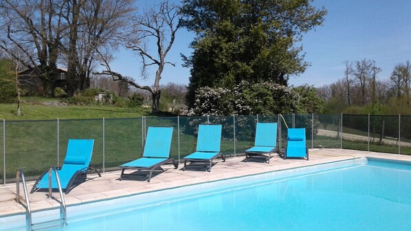 Haute Fayette is a 17th century priory renovated to a high standard situated in a peaceful, rural area. Renovations have retained a lot of the original features, arched windows, original stonework and exposed beams. The thick original stone walls mean the property keeps cool which can be a godsend on very hot days. The property has easy access from the car park for people needing a wheelchair. Also accessible by wheelchair is the downstairs bedroom, bathroom, dining room, kitchen, lounge, garden and pool. We have kitted out the kitchen with everything we would use ourselves from pizza cutter to washing machine. Included are microwave oven, hob, regular oven, dishwasher, fridge/freezer, coffee machine, toaster and corkscrew! The Dining area/day room has a table for 10 diners to sit comfortably a chaise longue and easy chair. Access to the garden, exterior dining area, pool and aperitif terrace is gained through an arched doorway. The downstairs bedroom has two twin beds (sleeps 2) and its own bathroom with large shower, WC and handbasin. The lounge is cosy with two huge leather sofas, TV, coffee tables and wood burning fire. The upstairs open mezzanine area has easy chairs, original wooden beams and stone walls. The Master bedroom has a king size bed looking out onto the beautiful scenic countryside. Floor to ceiling windows give you a panoramic view over fields and forests and the chance to see the sunrise. The childrens room, with access to the bathroom, has 2 sets of bunk beds (sleeps 4). Bedroom 4 has a double bed and lounge area with views out over the garden and pool. This room also has access to the bathroom. The pool area is completely enclosed by a discrete safety fence, as demanded by French law, with a child proof self closing gate. We do ask though that you survey your children at all times. The pool is 5metres x 10metres with a depth of 1m at the shallow end progressing to 3metres at its deepest point. The garden and pool area are completely secluded and not overlooked. The area around the property has a lot to offer including, chateaux, ruins (Chateau La Mercerie is amazing), kayaking, markets, caves (the best in my opinion being those at Villars) golf, velo-rail, bicycle hire, soap making, glass blowing, underground church (a must, at Aubeterre.) Make a day of it and visit the potter Xavier Maffre. There is car space for two possibly three cars. Our neighbours have free range chickens who enjoy a walk around our pool so we request no animals. The minimum stay is 4 nights. We do ask that you respect the area around the house. We have a very good relationship with our neighbours and we want it to stay that way. Please no undue noise especially after 10pm. The supermarket and local shops are a 10 minute car drive away from the property. Please note that the 4 bunk beds are only suitable for children.