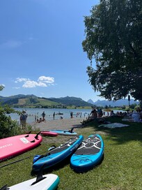 Hotel Allegro Einsiedeln, lakeside, offers active travelers plenty of options. Start your day with a breakfast buffet, then enjoy bowling or basketball. Relax on the rooftop terrace with scenic views. High-speed WiFi, bike rentals, and multilingual staff ensure a smooth stay.