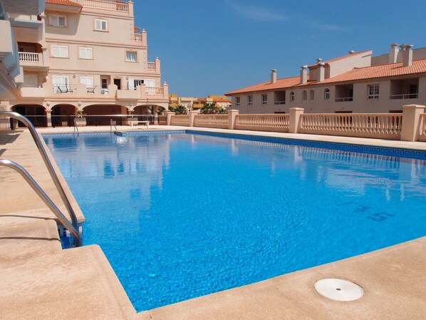 Ideally located in centre of Almerimar. 5 minutes walk to good value supermarket, bars and restaurants. Only 10 minutes walk to two quiet beaches. Relax on the terrace with fantastic views of the Almerimar golf course and Sierra Nevada mountains. The golf course club house is directly opposite the apartment and within a few minutes walk.