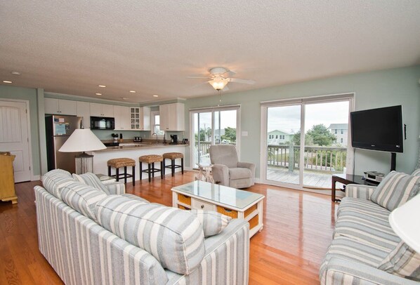 Escape to Pennies From Heaven, a secluded Almost Oceanfront Vacation Home on The Point. Enjoy the ocean breeze from the Open and Covered Decks or take a short walk across the street for beach access, with Ocean views in sight. Explore nearby surf fishing spots or unwind in one of three beautifully decorated bedrooms.