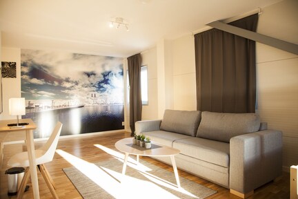 Ett mycket trevligt boende. Trevlig personal, stort och fräscht familjerum över förväntan. Fräsch restaurang i samma byggnad.