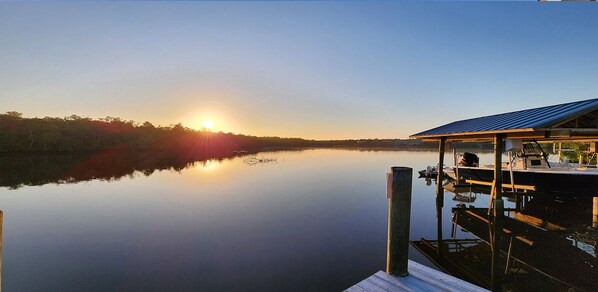 Dock is for pedestrian use, kayaks, canoes, and general leisure. Boats or skiffs are not allowed to dock at the private dock behind the house.