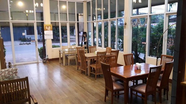 Travelers start their day with local flavors at the on-site restaurant serving all meals, then unwind in the garden with convenient perks like free self parking