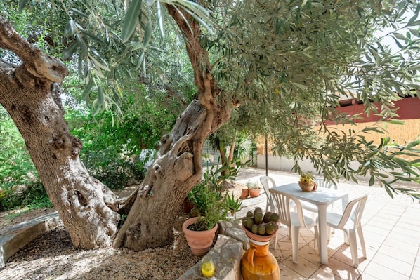 One of the strengths of Villa Rosa is the private courtyard, a small corner of paradise where you can enjoy moments of relaxation in the open air. Here, an outdoor dining area invites you to dine under the stars, immersed in the tranquility and charm of the place.