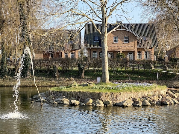 Idyllically situated by the village pond in Kopendorf, this semi-detached house, built just a few years ago, invites you to relax and unwind.