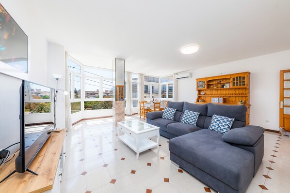 Overlooking the mountain, the holiday apartment Socorro 39-1 in Felanitx impresses guests with its fantastic views. The 161 m² property consists of a living room, a fully-equipped kitchen with a dishwasher, 3 bedrooms and 2 bathrooms and can therefore accommodate 6 people. Additional amenities include high-speed Wi-Fi with a dedicated workspace for home office, air conditioning, a fan, a washing machine as well as a TV with a DVD player. A baby cot and a high chair are also available.