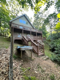 Perched atop a mountain, Altitude Adjustment offers serene retreat. Begin your day with coffee on one of the outdoor decks, taking in views of Grandfather Mountain while surrounded by nature.
