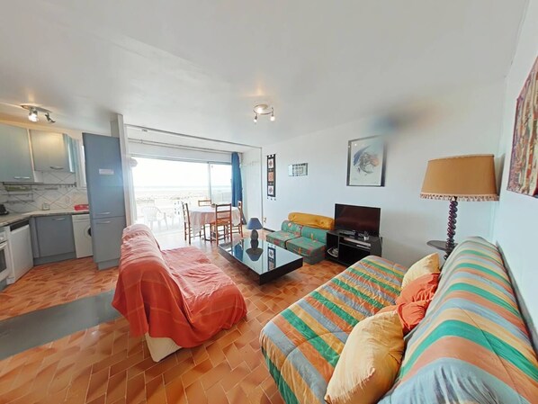 T2 ground floor apartment with terrace giving direct access to the beach provides laundry facilities and more.