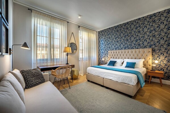 Modern luxury apartment in the heart of Florence, just steps away from the Duomo and main attractions. Spacious and well-maintained spaces offer two bedrooms, two bathrooms and a double sofa bed, ideal for families or groups up to 7 people. Equipped with air conditioning, fast WiFi, Smart TV, washing machine and dryer. Self check-in for maximum flexibility. Located on the 4th floor without a lift, in the historic centre and in ZTL. The effort of the stairs is amply repaid by the elegance and unique location.