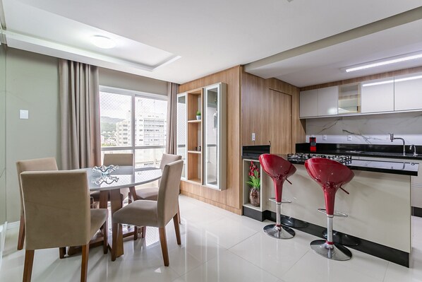 Step into a modern haven in Trindade, central Florianópolis. This 74m² apartment boasts a suite with KING bed, Smart TV in the living room and AC throughout. Fully furnished with kitchen essentials and appliances like coffee maker and microwave. Enjoy nearby attractions such as UFSC or Villa Romana Shopping.