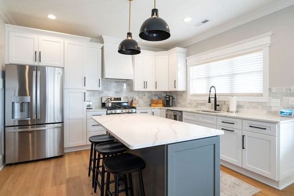 With four bedrooms and three and a half bathrooms, this oasis provides ample space for guests to unwind and recharge. The bright and airy living areas are perfect for gathering together, and the well-equipped kitchen is ready for you to prepare delicious meals or quick snacks.