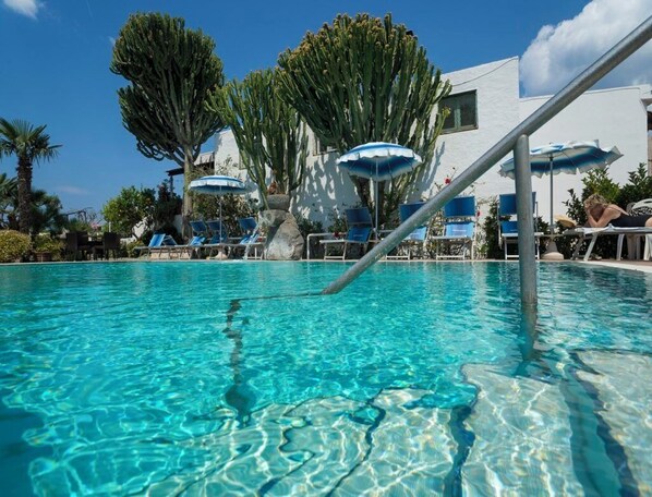 Poseidon Gardens on Ischia's southwestern coast offers spectacular sunsets and peaceful surroundings. Guests relax in the garden, cool off in the pool, or walk 5 minutes to the sea. Enjoy complimentary breakfast and WiFi for a restorative island experience.