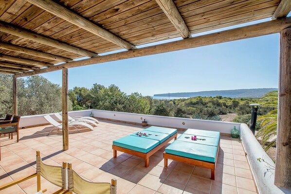 Terrace/patio - Migjorn house10pax.5 bedrooms+4,5 bathrooms.Sea views.800 meters Migjorn beach. (Formentera)