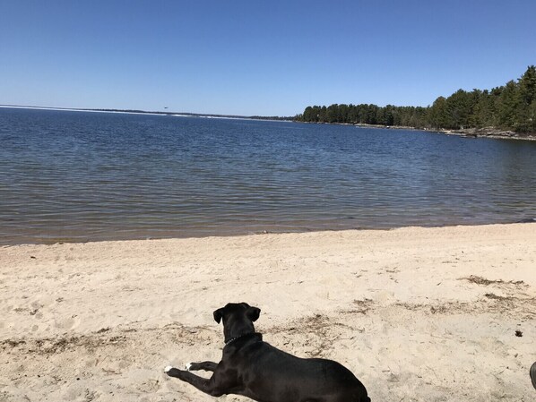When staying at the Beach Cabin, one can enjoy sitting on the beach, deck or comforts of the cabin; all while enjoying the views of Rainy Lake, Ontario. The cabin faces Northwest which allows one to enjoy the most amazing sunsets. There is a beautiful natural sand beach to enjoy with a large fire pit. A large dock is available for docking boats or fishing off.