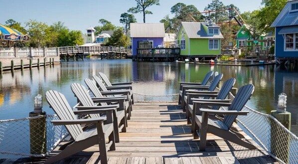 Overall great visit! We did not want to leave! The view is great, but the trees do block the stage of a view. You still have a nice view of sidewalk town and can see fireworks perfectly! The pool is a little walk away but my kids didn’t mind. Also the music from town is very loud starts early like 8-9am and goes late 10pm, again we didn’t mind. I would definitely book here again we had an amazing time as always at Baytowne:-)
