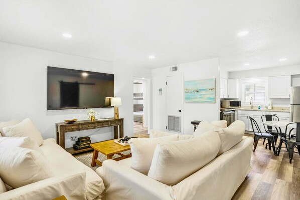Welcome to Bluefish #5! This beautiful 2 bedroom, 1 bath, recently renovated condo comfortably sleeps up to 7 guests. Guest will find a King Bed in the master suite and Full over Full Bunk with Twin Trundle in the guest bedroom. Enjoy easy access to the beach, only .2 miles, for family beach days, sunset strolls and more. Bluefish #5 is the perfect location to unwind!