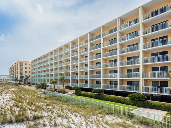 Pelican Isle’s amenities enhance your stay with a seasonally heated pool, a soothing hot tub, a fitness room and a charcoal grilling area. Enjoy direct beach access, complete with complimentary in-season beach service, making your stay both comfortable and convenient.