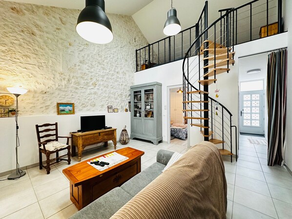 In a quiet street close to the town center, charming holiday home completely renovated, comprising entrance hall, living room, kitchen, one bedroom, a mezzanine with sleeping area, shower room and WC. Courtyard with outbuilding comprising: one bedroom, shower room/WC and small laundry room. Equipment: dishwasher, washing machine, fridge/freezer, oven, microwave, ... Sleeping: 3 beds of 140. Leisure equipment: TV, garden furniture, plancha. Surface area: 70 m². 200 m from the town center, large beach, South beach and North beach 500 m. Bus station 800 m and SNCF train station 6.3 km, Rochefort thermal establishment 15 min. TO BE PAYED upon arrival: security deposits of €500 for the rental, €100 for cleaning, and tourist tax. OPTIONAL SERVICES to be arranged before arrival: sheets €12 per bed per week, set of 2 bath or beach towels €12 per week, set of 2 bath mats €7 per week, kitchen linen (2 tea towels and 2 hand towels) €7 per week. Cleaning: €100. The rental is granted for a stay that begins on the day of arrival from 2:30 [hidden] and ends on the day of departure at 10:00 [hidden] at the latest.