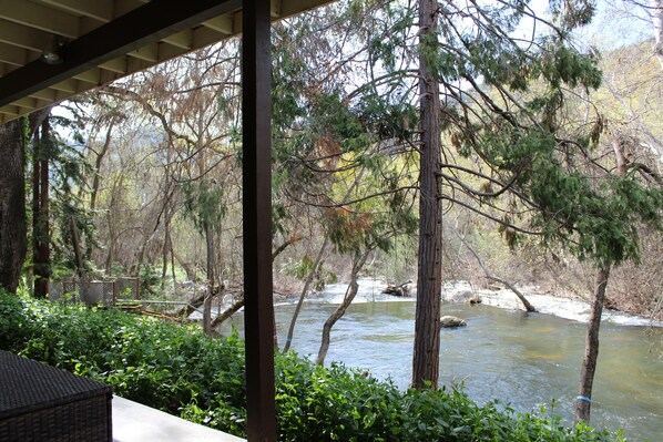 Come in the Summer and enjoy many hours of swimming, floating, fishing, and BBQ’ing in your own completely private stretch of river. Or visit nearby Sequoia and Kings Canyon National Park’s giant trees, Moro Rock, Crystal Caves, hiking trails, and more. In the Fall, enjoy fishing and the sounds of the river amid the colors and fall of the leaves. In Wintertime enjoy the cozy fireplace while watching the river flow by or spend the day in the Park cross country skiing or just playing in the snow. In the Spring enjoy the cool air, abundant wildflowers, green hillsides, and sound of the rushing water. Hike, bike, or drive the area to discover what you enjoy the most.