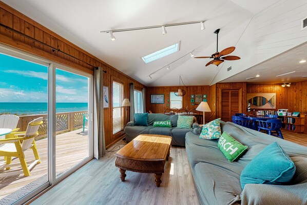 Close to Outer Banks Beaches, Oceanfront home with 2-tier deck, beach access & sunrise views - 2 dogs welcome has plenty to offer. Guests can connect to free in-room WiFi.