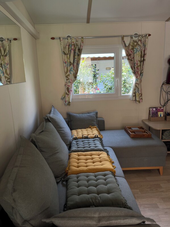 Living area - L'Echappée Belle by Sandra and Nico, comfortable mobile home in Camargue in 4 *.   (Gallargues-le-Montueux)