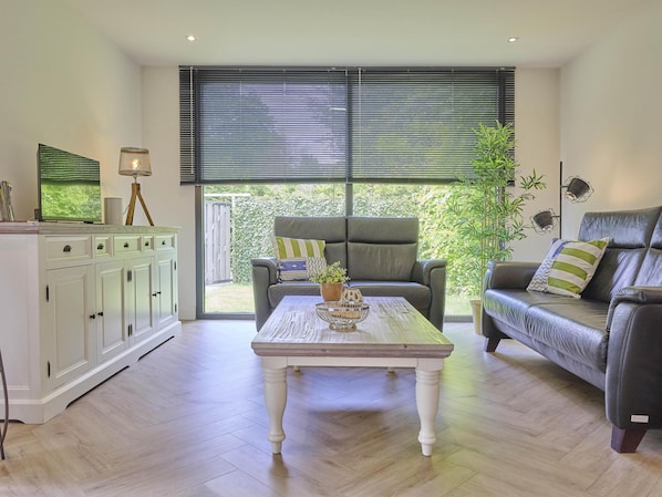 Eine schöne und geräumige, moderne Hütte. Wir waren dort mit 4 Erwachsenen und 2 Hunden und es ging gut. Der eingezäunte Garten ist sehr schön mit Hunden (oder Kindern)! Der Garten ist geschmeidig und stilvoll angelegt. Ach ja, und was wirklich super ist, ist die Doppeldusche! Das haben wir sehr genossen!