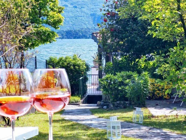 Sehr schön eingerichtete Wohnung mit herrlichem Blick auf Garten, See und den Hausberg Monte Legnone. Sehr zuvorkommende, liebenswürdige Vermieter.