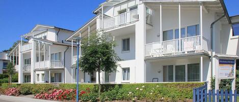 Balcony, free use of the AHOI adventure pool and sauna - Villa Karola FeWo 13 - provides everything that you need. Guests can connect to in-room WiFi.
