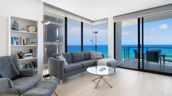 A well laid out nicely decorated and modern apartment with great facilities. The unobstructed view of the beach and the ocean beckons constantly and the low rolling rumble of the waves relaxes. It was hard to leave the place to go out for a meal or to shop. Truly a lovely stay.