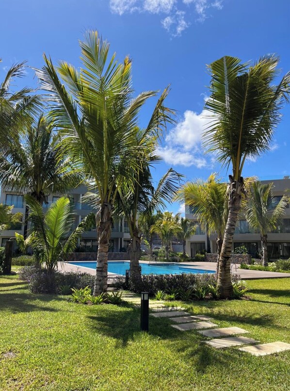 Does Alea : Luxury 2 bedroom/bathroom apartment close to the beach have a pool?