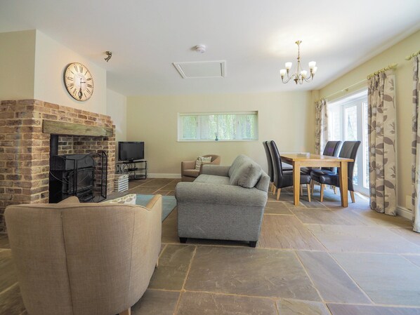 Living/dining room: Freeview TV, Woodburner, French Doors Leading To Garden