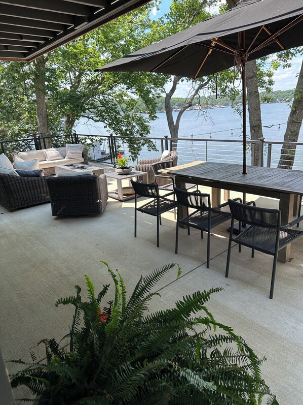 Outdoor dining - Unique home and 3 level bunkhouse.  Lake of the Ozarks. Accommodate 24 guests!   (Gravois Mills)