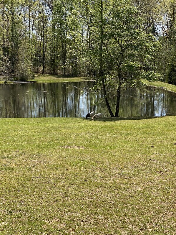 Escape to a secluded off-grid cabin surrounded by peaceful views of the pond. Relax on the porch, fish in the stocked pond, or explore walking trails amidst chickens and friendly goats. Unwind with a campfire at your doorstep or enjoy fresh eggs for breakfast.