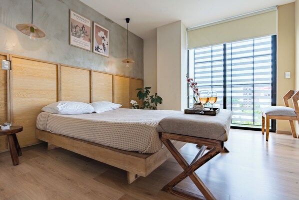 Located in Guadalajara's vibrant financial district, Torre UBER LIVING offers a luxurious retreat with 3 spacious bedrooms and a panoramic view from the balcony. Enjoy access to the rooftop garden with 360° views, business room, lobby security, gym and complimentary parking. Daily housekeeping keeps your space clean.