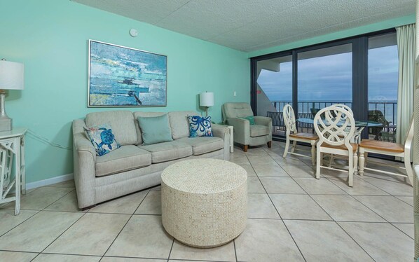 Step outside onto the Gulf front balcony and soak in the stunning views. With seating for up to four people, it’s a delightful spot to savor the Gulf’s beauty. Watch the gentle waves, listen to the soothing sounds of the sea, and take in the refreshing gulf breeze.